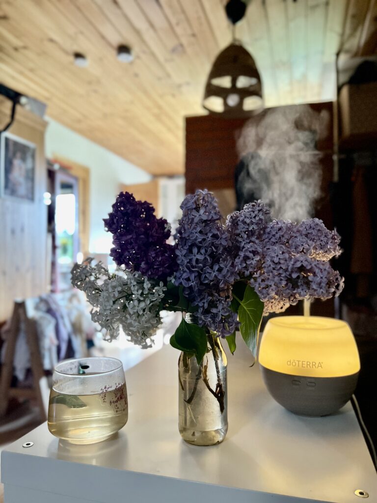 Rohkem ma magama ei jäänud, kuigi proovisin. Korra tukkusin kella 10 paiku kui Norman ja Sirel poes käisid. Enne seda käisime veel kõik koos jalutamas, kohe hommikul võttis Norman mu sünnitusplaani ette: tõi tuppa sireleid, pani difuuseri mu valitud õlidega, muusika (sama delfiinimuusika mis esimese sünnituse ajal), vannituppa küünla, tegi teed… olin kõik oma spetsiifilised soovid kirja pannud, et hea ruum luua.